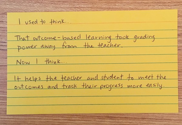 Outcomes-Based Assessment (OBA) has been on our educator radar for years. I have the pleasure of working with groups of teachers throughout Saskatchewan to dig into what we know, what we wonder about and examine logistical barriers or problems to solve in order to move forward.