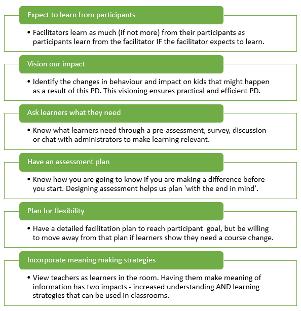In my decade of designing and facilitating professional learning and teaching others to design professional learning, I have been seeking out and creating ways to approach workshop design. My goal is to ensure that I provide rich, authentic, practical and differentiated adult learning to teachers and related professionals. I firmly believe that a day of teacher workshop must be as or more important than a day that teacher would have had with their students. And a day with their students is SO important.