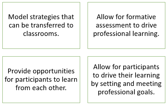 It is important that we choose processes for learning that fit the content and amount of time provided. Considering Dylan Wiliam’s Formative Assessment Strategies, instructional strategies in professional learning are particularly powerful when they: